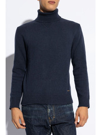 fine-knit roll-neck sweater Highlights - Midnight blue - Wool-cashmere blend - Fine knit - Distressed finish - Silver-tone logo plaque - Ribbed cuffs and hem - Roll neck - Straight hem Made in Italy Composition Wool 90%, Cashmere 10%