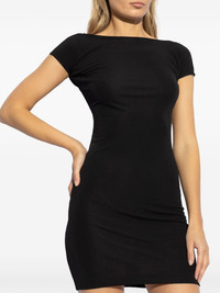 open-back mini dress Highlights - Black - Stretch-design - Mock neck - Cap sleeves - Open back - Silver-tone logo plaque - Straight hem - Slip-on style Made in Italy Composition Viscose 100% Washing instructions Read Manufacturer Guidelines