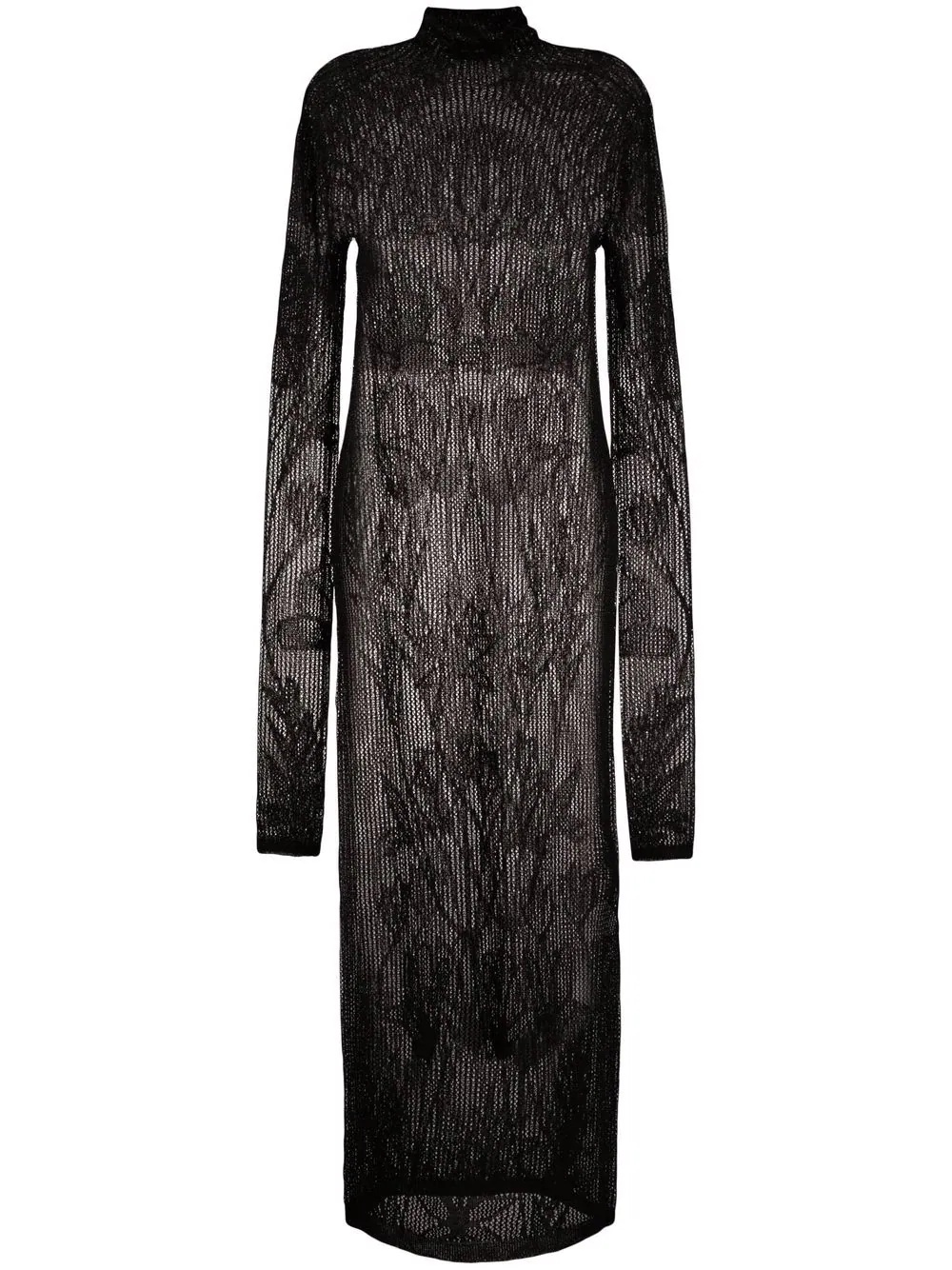 open-knit long-sleeve dress Dsquared2 puts a contemporary twist on knitwear with this dress. Boasting a long-sleeve silhouette, it boasts an all-over floral pattern for an unexpected finish. Made in Italy Composition Acetate 80%, Polyester 10%, Polyamide 10% SIZE & FIT Model measurements Height 5 ft 10 in(1.78 m) Bust/Chest 30.31 in(77 cm) Hips 36.61 in(93 cm) Waist 24.8 in(63 cm) FittingInformation This piece fits true to size. We recommend you get your regular size Cut for a loose fit Made with a mid-weight fabric Washing instructions Dry Clean Only