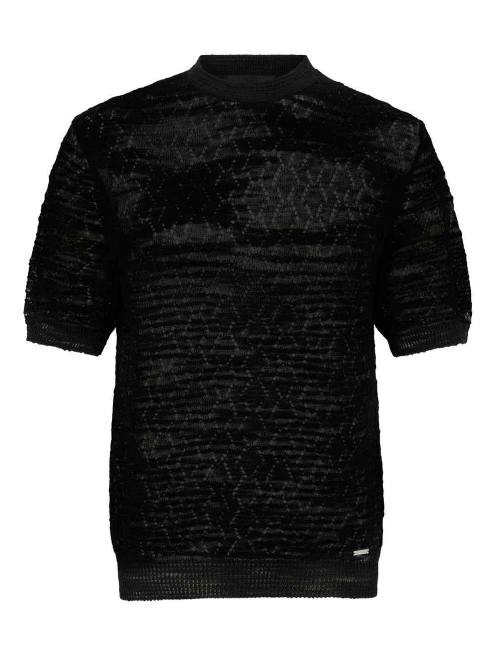 open work knit T-shirt Highlights - Black - Open work - Knit construction - Ribbed crew neck - Short sleeves - Ribbed hem Made in Italy Composition Lyocell 100% Washing instructions Read Manufacturer Guidelines