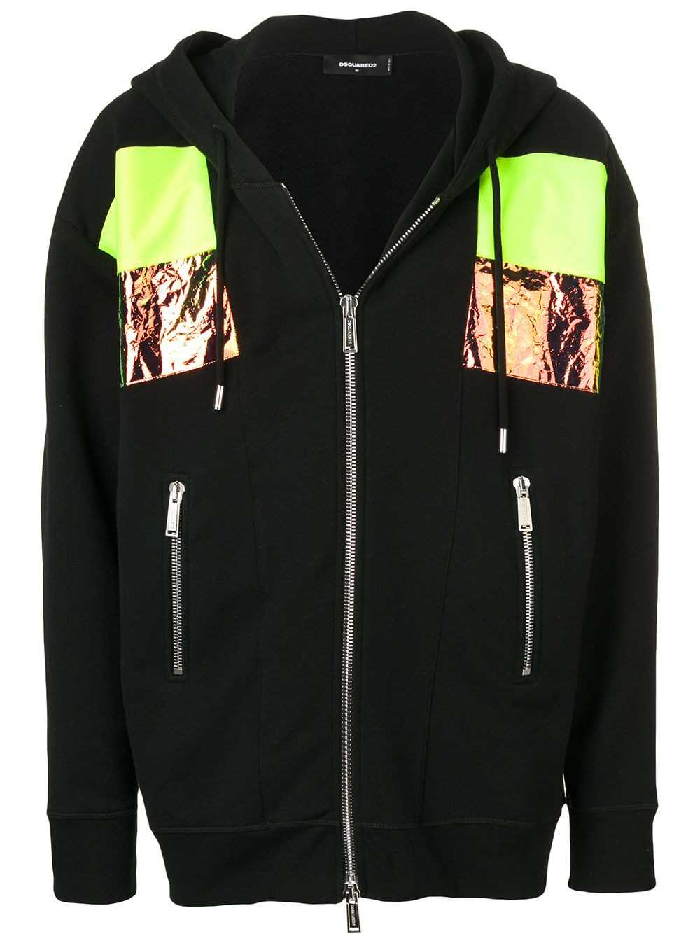 paneled hoodie DSQUARED2 sees the seditious spirit of punk collide with the sharp silhouettes of Italian tailoring. Made from black cotton, this hoodie has long sleeves, a relaxed fit, a drawstring hood and a paneled design. Made in Italy Composition Outer: Cotton 100%, Polyurethane 100%, Polyester 100% Lining: Cotton 100% SIZE & FIT Model measurements Height 6 ft 2 in(1.87 m) Bust/Chest 38.18 in(97 cm) Hips 36.61 in(93 cm) Waist 29.13 in(74 cm) Washing instructions Hand Wash