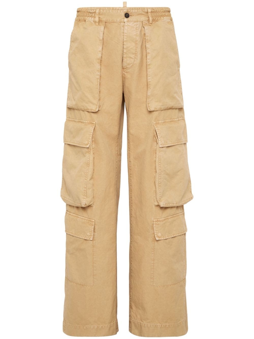 panelled multi-pocket cargo trousers Highlights - Sand beige - Panelled design - Faded effect - Logo print to the rear - Mid-rise - Elasticated waistband - Concealed fly and button fastening - Belt loops - Straight leg - Side patch pockets - Multiple cargo pockets - Two rear flap pockets Imported Composition Cotton 100%
