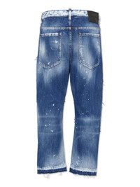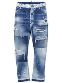 patchwork cropped jeans Highlights - Navy blue - Cotton - Denim - Paint splatter detail - Denim patchwork design - Mid-rise - Belt loops - Classic five pockets - Mini logo tag - Logo patch to the rear - Concealed fly and button fastening - Cropped leg Made in Italy Composition Cotton 100%, Calf Leather 100%