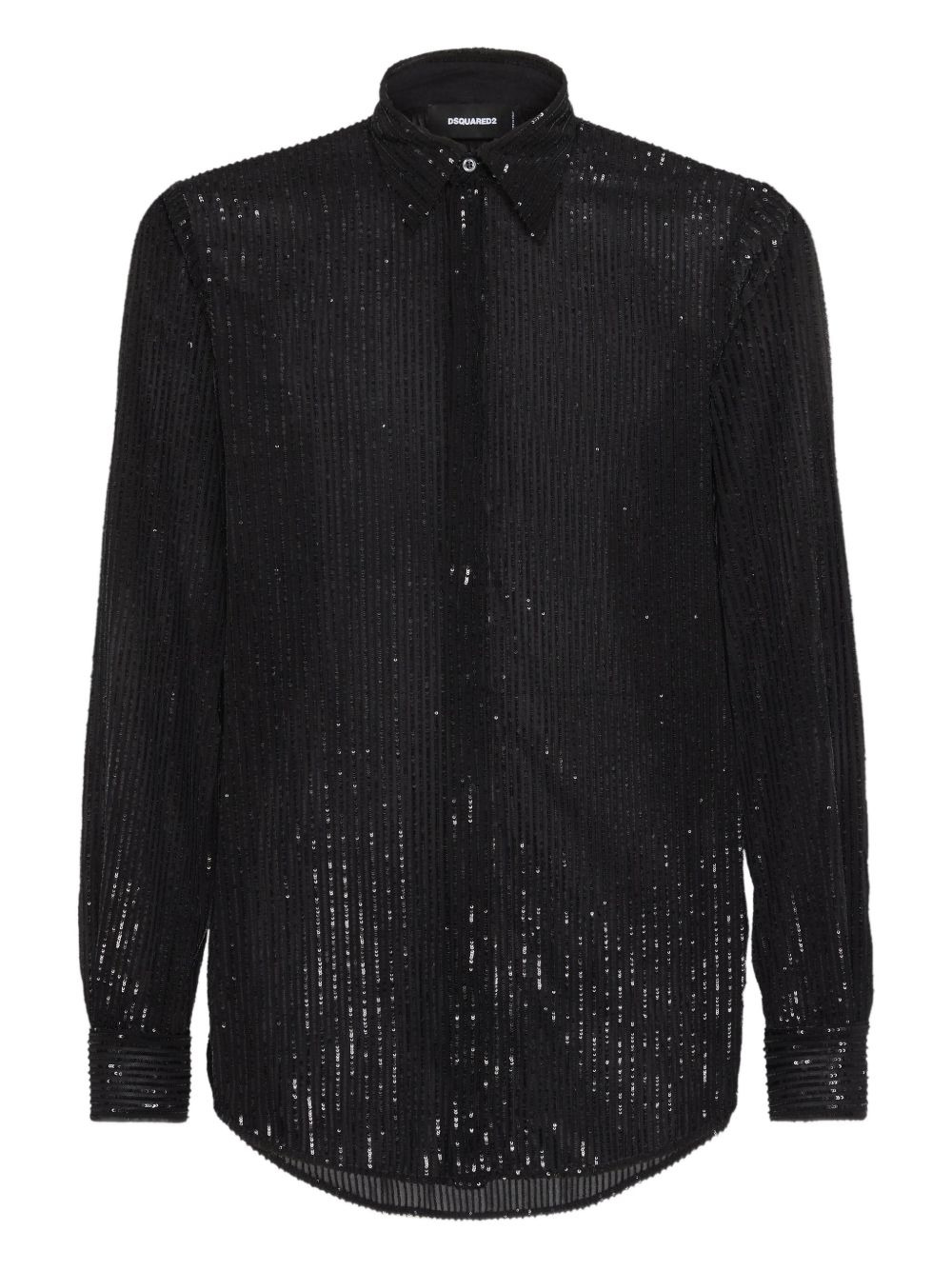 pinstriped shirt Highlights - Black - Front button fastening - Pinstripe pattern - Sequin embellishment - Long sleeves Made in Italy Composition Fabric 100% Washing instructions Read Manufacturer Guidelines