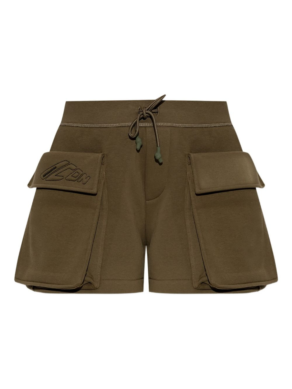 pocket drawstring shorts Highlights - Olive green - Drawstring fastening - Side pockets - Embroidered detail - Elasticated waistband - Tonal stitching Made in Italy Composition Cotton 66%, Polyester 34% Washing instructions Read Manufacturer Guidelines