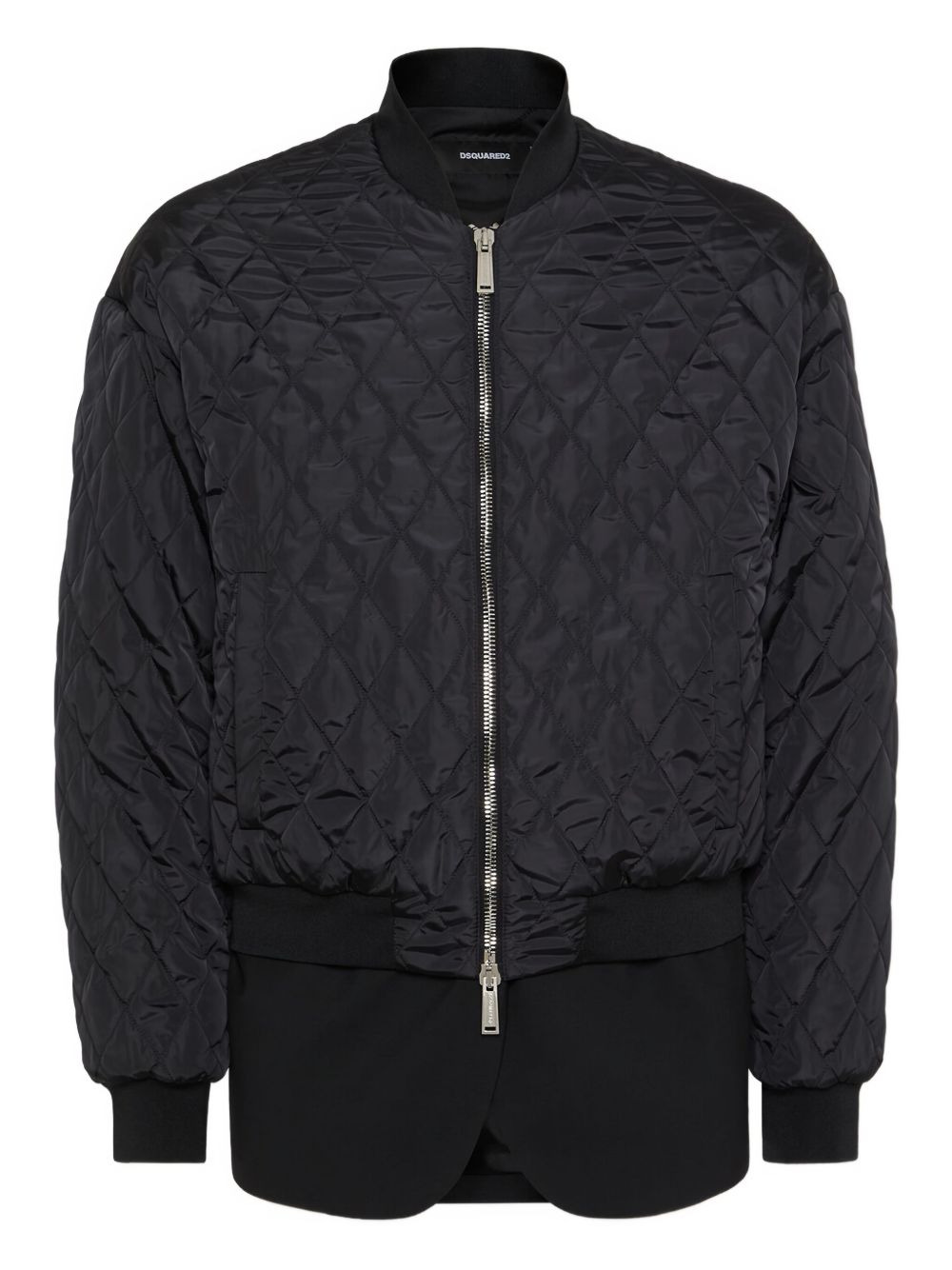 quilted bomber jacket Highlights - Black - Diamond quilting - Zip fastening - Ribbed hem - Layered blazer - Bomber collar Made in Italy Composition Polyester 100%, Virgin Wool 95%, Spandex/Elastane 5% Washing instructions Read Manufacturer Guidelines