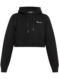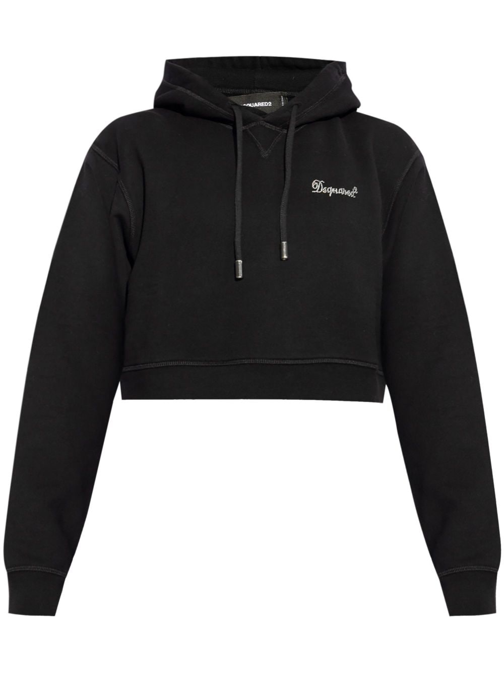 rhinestone-logo cropped hoodie Highlights - Black - Cotton - Drawstring hood - Drop shoulder - Long sleeves - Rhinestone-logo at the chest - Cropped - Straight hem Made in Italy Composition Cotton 100%