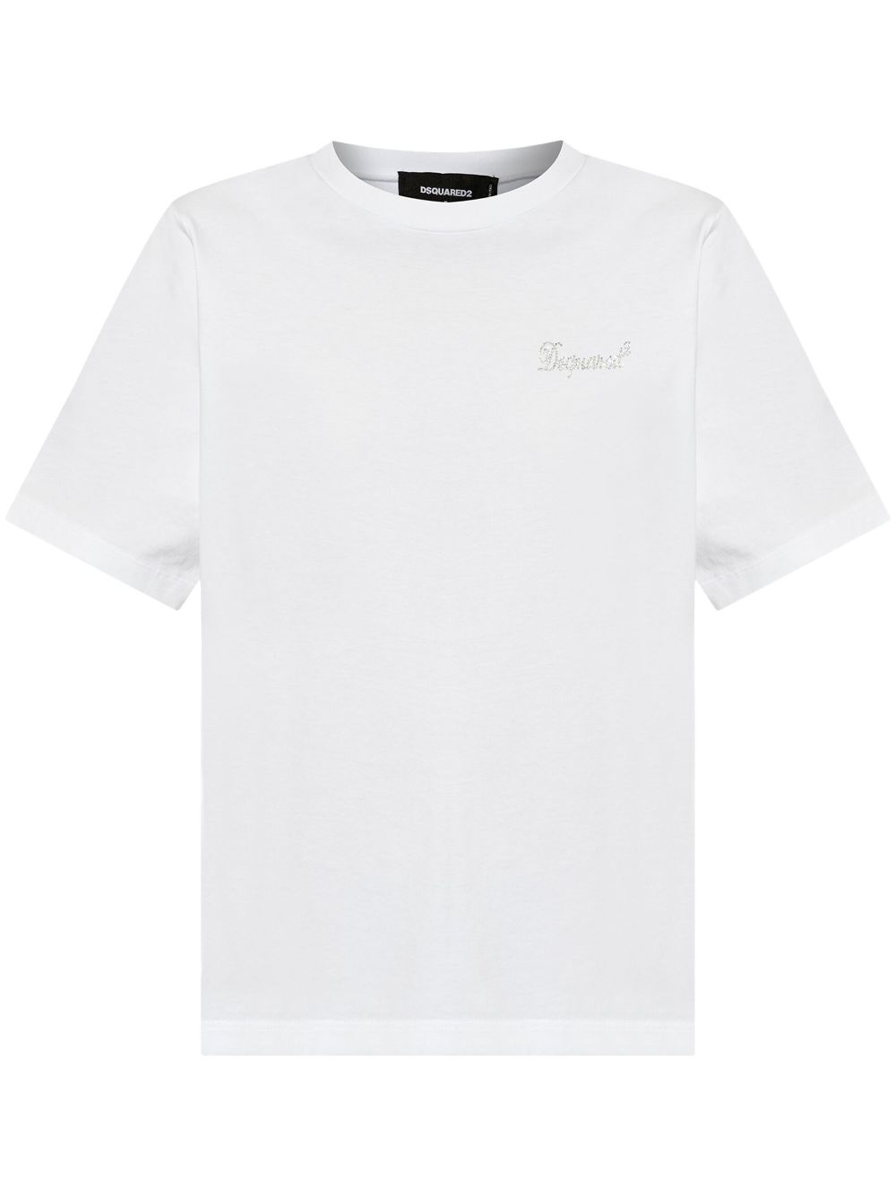 rhinestone-logo T-shirt Highlights - White - Crew neck - Short sleeves - Straight hem Made in Italy Composition Cotton 100%