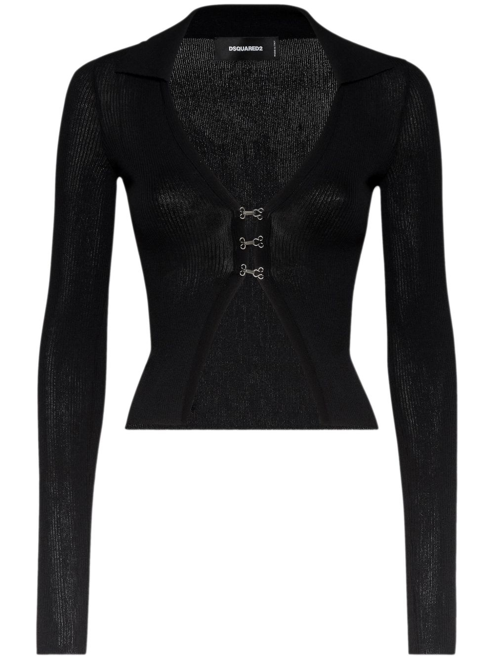 ribbed-knit cardigan Highlights - Black - Cotton blend - Ribbed knit - Front hook and eye fastening - V-neck - Long sleeves - Straight hem Made in Italy Composition Cotton 84%, Polyamide 16%