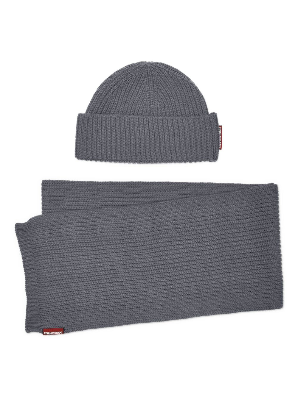 ribbed-knit scarf set Highlights - Gunmetal grey - Matching beanie - Mini logo tag Made in Italy Composition Fabric 100%