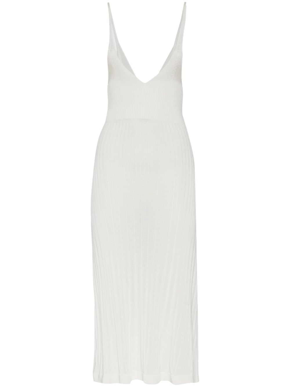 ribbed midi dress Highlights - White - Ribbed knit - Slip-on style - Plunging v-neck - Sleeveless - Logo plaque - Straight hem - Mid-length Made in Italy Composition Fabric 100%