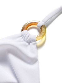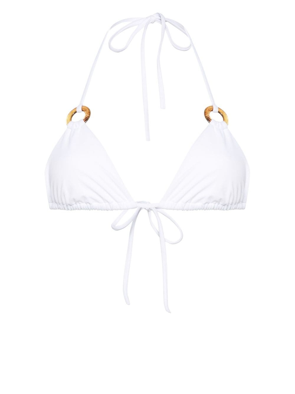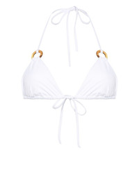 ring-detail triangle bikini top Highlights - White - Stretch-design - Ring embellishment - Triangle cup - Halterneck tie fastening - Rear tie fastening - Be mindful to try on swimwear over your own garments. Made in Italy Composition Polyamide 80%, Elastane 20% Washing instructions Hand Wash