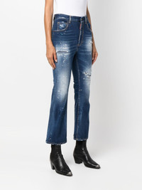 ripped-detail flared jeans Highlights - Indigo blue - Cotton - Stonewashed - Ripped detailing - Logo patch to the rear - Concealed fly and button fastening - Classic five pockets - High rise - Flared design - Cropped - Straight hem Made in Italy Composition Outer: Cotton 100% Lining: Polyester 65%, Cotton 35% SIZE & FIT Model measurements Height 5 ft 10 in(1.78 m) Bust/Chest 33.07 in(84 cm) Hips 36.61 in(93 cm) Waist 24.8 in(63 cm) FittingInformation Designed with a flared hem, these jeans allow for a close fit at the waist with a slim fit over the leg and widening towards the hem Cropped in length Constructed from stretch denim, this piece offers a stretch fit with durability This piece fits true to size – take your usual size Washing instructions Machine Wash