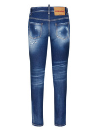 ripped slim-leg jeans Dsquared2 elevates classic slim-leg jeans with distressed detailing. A case in point, this pair is cut from blue denim with frayed rips and light distressing that will continue to develop a unique patina over time. Highlights - Blue - Stretch-cotton - Denim - Washed - Whiskering effect - Ripped detailing - Mini logo tag - Logo patch to the rear - Belt loops - Button fly fastening - Classic five pockets - Slim cut Made in Italy Composition Outer: Cotton 99%, Spandex/Elastane 1% Lining: Polyester 65%, Cotton 35%