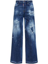ripped wide-leg jeans Highlights - Navy blue - Concealed fly and button fastening - Belt loops - Classic five pockets - Whiskering effect Made in Italy Composition Outer: Cotton 93%, Polyester 4%, Elastane 3% Lining: Polyester 65%, Cotton 35%