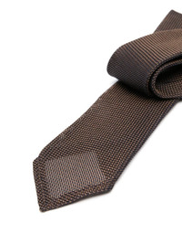 semi-sheer silk tie Highlights - Cedar brown - Silk - Interwoven design - Semi-sheer construction - Pointed tip - Internal logo tag - Wraparound style Made in Italy Composition Silk 100%