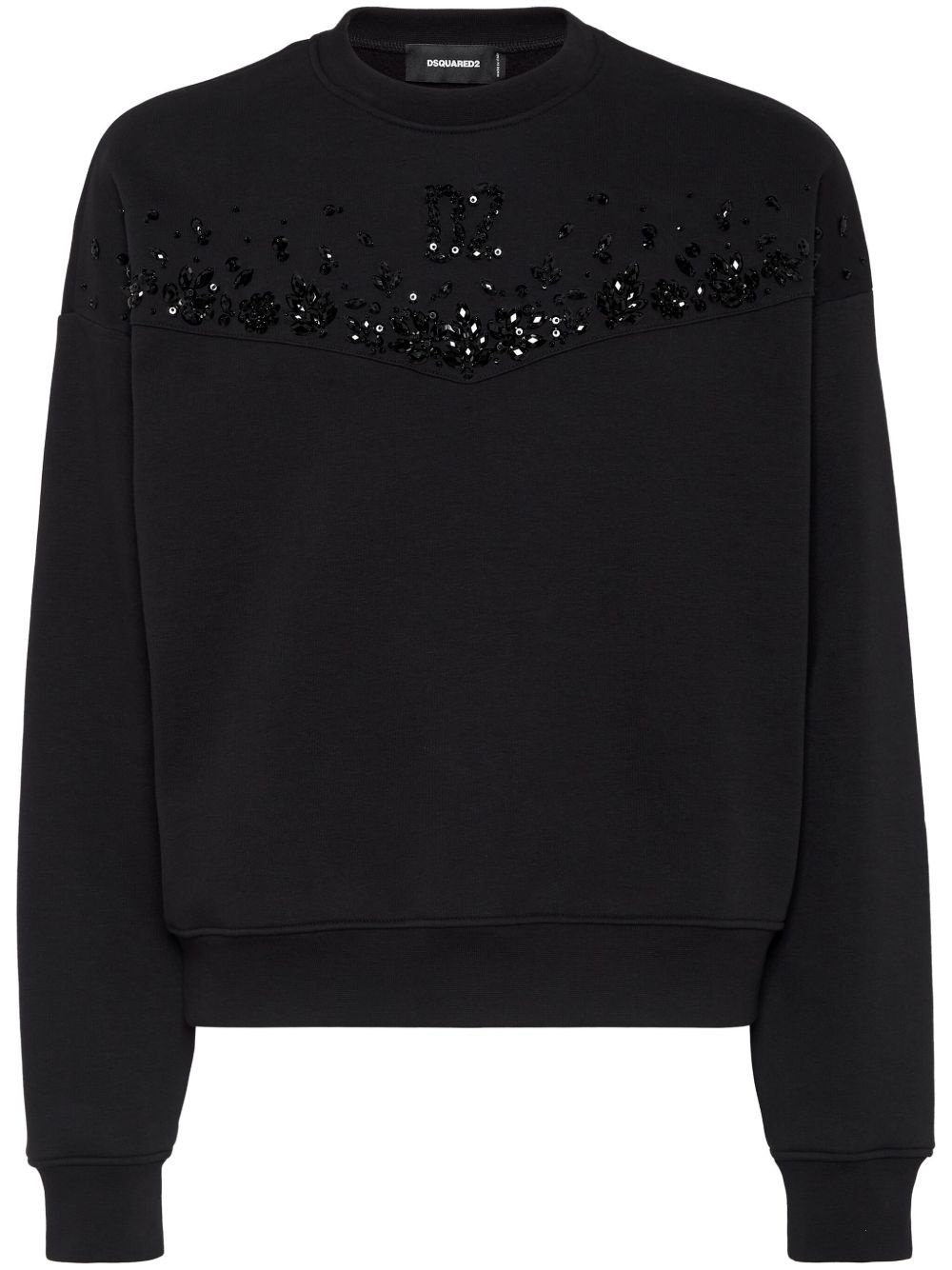 sequin-embellished sweatshirt Highlights - Black - Cotton blend - Jersey texture - Sequin embellishment - Crew neck - Drop shoulder - Long sleeves - Ribbed cuffs and hem Made in Italy Composition Cotton 67%, Polyester 33%