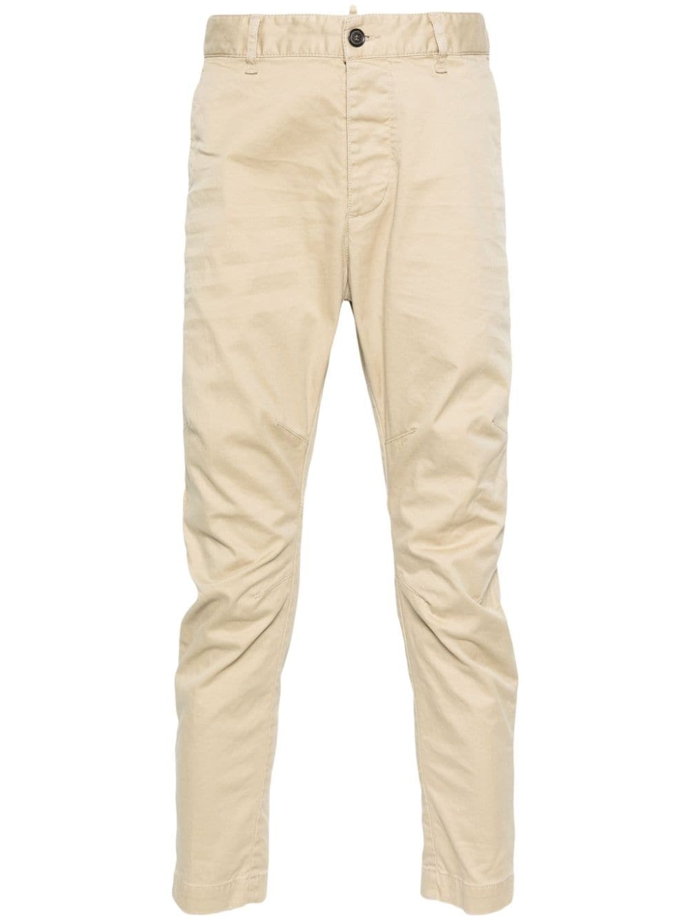 Sexy tapered chinos Made from cotton in Italy, these beige mid-rise trousers from Dsquared2 are cut for a tapered silhouette and slightly cropped leg whilst a gold-tone logo plaque adds a recognisable touch to the pair. Highlights - Beige - Cotton blend - Twill weave - Belt loops - Two side slash pockets - Seam detailing - Two rear button-fastening jetted pockets - Tapered leg - Button fly fastening Imported Composition Outer: Cotton 97%, Elastane 3% Lining: Cotton 100% SIZE & FIT Model measurements Height 6 ft 2 in(1.87 m) Bust/Chest 36.41 in(92.5 cm) Hips 37 in(94 cm) Waist 29.52 in(75 cm) FittingInformation Designed for a slim fit, offering a comfortable fit that sits just away from the leg Made from a midweight stretch fabric, this piece offers elasticity and flexibility when worn This piece fits true to size – take your usual size