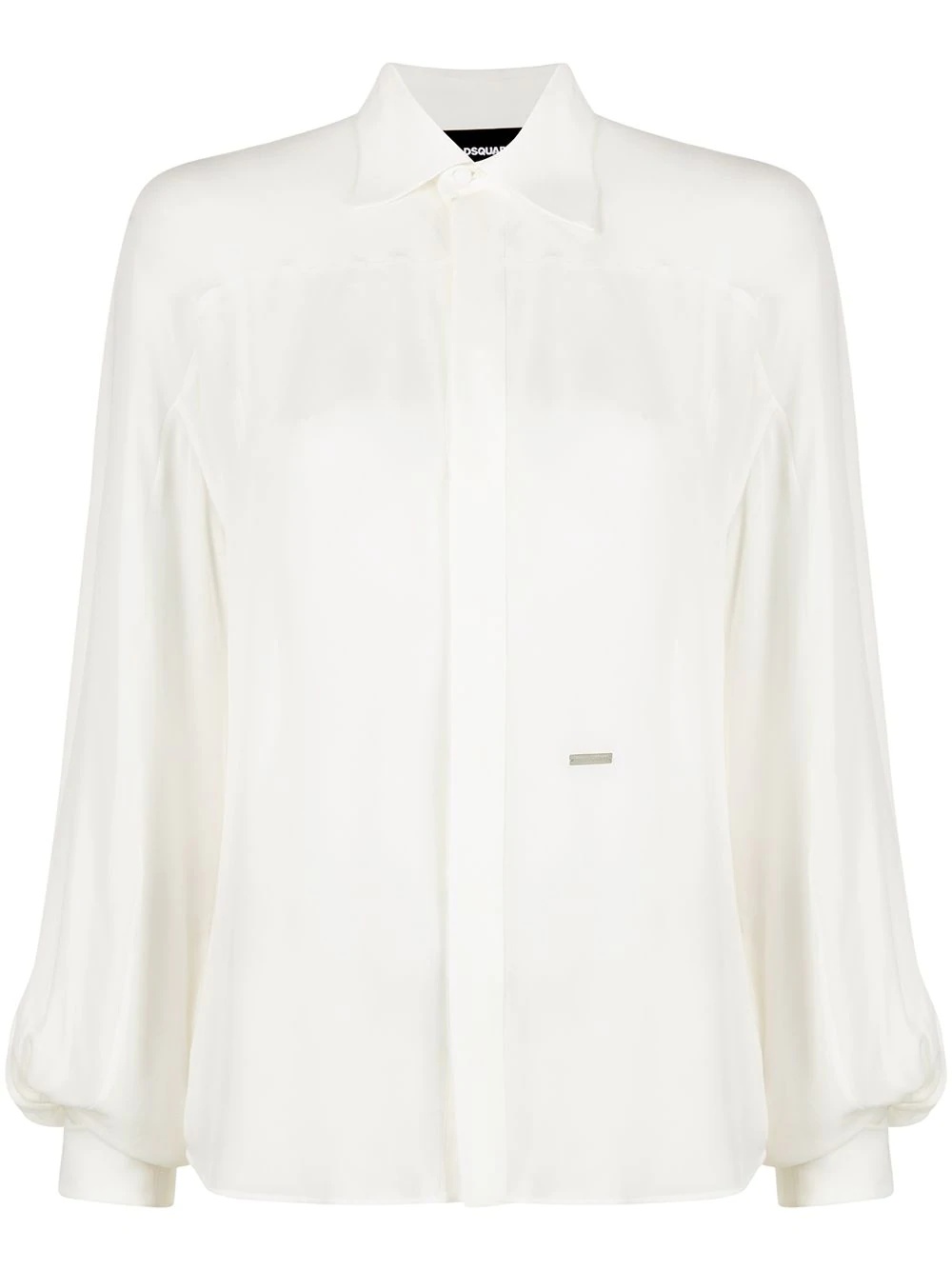 silk button-up shirt Dressing for the office can be tricky - you know it, we know it and Dsquared2 knows it. That's why the brand presents this silk button-up shirt as the solution to your problem. Decorated with a miniature silver-tine logo plaque, it's as easy as "A, B-- sorry, we've got this meeting room booked now." Highlights - White - Silk - Silver-tone logo plaque - Straight-point collar - Concealed front button fastening - Long sleeves Made in Italy Composition Silk 100% SIZE & FIT Model measurements Height 5 ft 10 in(1.78 m) Bust/Chest 33.07 in(84 cm) Hips 35.82 in(91 cm) Waist 25.98 in(66 cm) FittingInformation This piece fits true to size. We recommend you get your regular size Cut for a loose fit Made with a lightweight non-stretch fabric Washing instructions Dry Clean Only