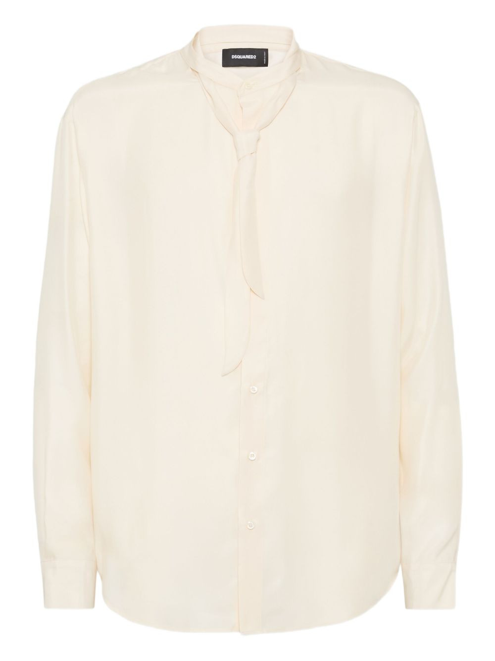 silk-satin shirt Highlights - Light beige - Front button fastening - Attached scarf - Collarless - Curved hem Made in Italy Composition Silk 100% Washing instructions Read Manufacturer Guidelines