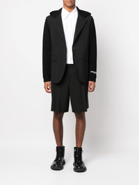 single-breasted hooded blazer jet black virgin wool blend logo print at the sleeve classic hood front button fastening classic hood long sleeves Made in Italy Composition Lining: Polyester 100%, Polyurethane 100% Outer: Virgin Wool 95%, Spandex/Elastane 5% SIZE & FIT Model measurements Height 6 ft 2 in(1.89 m) Bust/Chest 35.03 in(89 cm) Hips 38.18 in(97 cm) Waist 29.92 in(76 cm) FittingInformation This piece fits true to size. We recommend you get your regular size Cut for a slim fit Made with a mid-weight stretch fabric