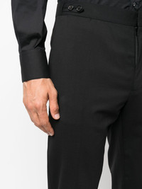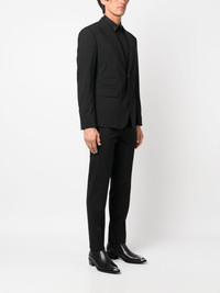 single-breasted two-piece suit Highlights - Black - Virgin wool/cotton - Blazer: - Slim cut - Buttoned-cuff sleeves - Classic lapels - Front button fastening - Long sleeves - Chest welt pocket - Front flap pockets - Trousers: - Decorative button detailing - Pressed crease - Mid-rise - Concealed front fastening - Two side inset pockets - Two rear welt pockets Made in Italy Composition Outer: Virgin Wool 95%, Elastane 5% Lining: Polyester 100%, Cotton 100% SIZE & FIT Model measurements Height 6 ft 2 in(1.89 m) Bust/Chest 37.79 in(96 cm) Hips 37 in(94 cm) Waist 29.92 in(76 cm) FittingInformation Tailored for a slim fit, offering a comfortable fit that sits just away from the body The unfinished hems allow for the length to be altered Made from a midweight stretch fabric, this piece offers elasticity and flexibility when worn This piece fits true to size – take your usual size Washing instructions Dry Clean Only