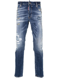 Skater distressed ripped skinny jeans Highlights - Blue - Stretch-cotton - Denim - Washed denim - Whiskering effect - Ripped detailing - Distressed effect - Logo-engraved buttons - Belt loops - Classic five pockets - Logo patch to the rear - Skinny cut - Concealed fly and button fastening Made in Italy Composition Outer: Calf Leather 100%, Cotton 99%, Elastane 1% Lining: Polyester 65%, Cotton 35% SIZE & FIT Model measurements Height 6 ft 2 in(1.88 m) Bust/Chest 35.43 in(90 cm) Hips 35.03 in(89 cm) Waist 27.95 in(71 cm) FittingInformation Designed for a skinny fit, these jeans offer a close fit throughout Constructed from stretch denim, this piece offers a stretch fit with durability This piece fits true to size – take your usual size