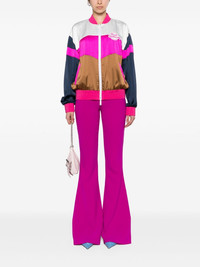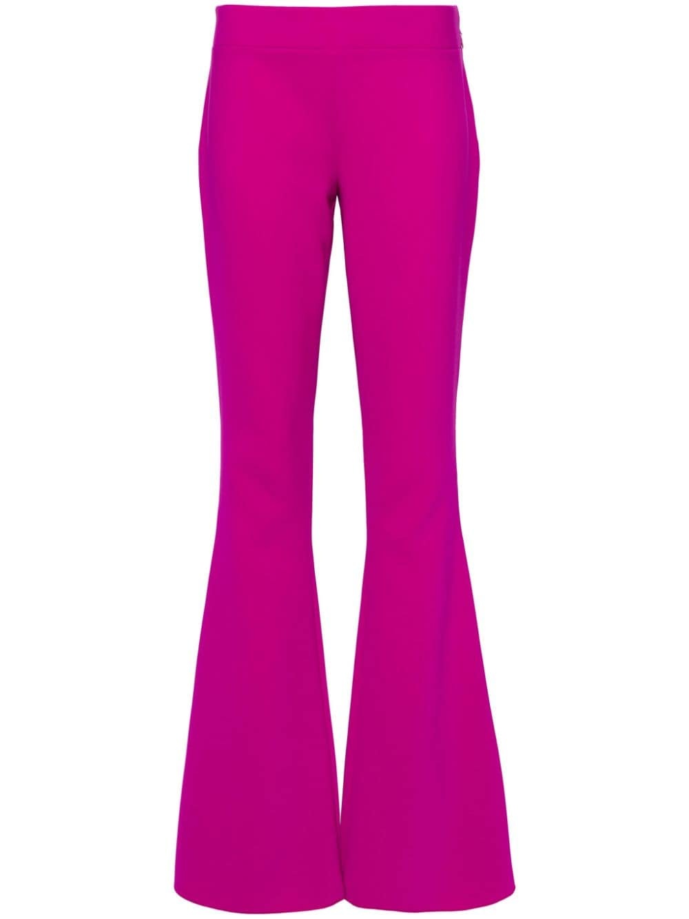 Skinny high-waist flared trousers Highlights - Dark purple - Crepe texture - Silver-tone logo plaque - High-waisted - Concealed side zip fastening - Flared leg Made in Italy Composition Polyester 100%, Polyurethane 100% SIZE & FIT Model measurements Height 5 ft 11 in(1.8 m) Bust/Chest 33.07 in(84 cm) Hips 37 in(94 cm) Waist 25.59 in(65 cm) FittingInformation Designed with a flared hem, these trousers allow for a close fit at the waist with a slim fit over the leg and widening towards the hem The elasticated waist allows for a comfortable fit Made from a midweight non-stretch fabric, this piece offers minimal elasticity when worn This piece fits true to size – take your usual size Washing instructions Dry Clean Only