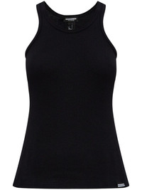 logo-applique tank top Highlights - Black - Cotton - Fine ribbed - Round neck - Sleeveless - Silver-tone logo plaque - Racerback - Straight hem Made in Italy Composition Cotton 100%