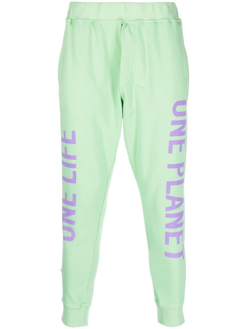 slogan-print cotton track pants Highlights - Pastel green/purple - Cotton - Slogan print to the side - Logo print to the rear - Elasticated waistband - Tapered leg - Two side slash pockets - Rear welt pocket - When buying this unisex item, keep in mind that it is graded in standard men's sizing. Made in Italy Composition Lining: Cotton 100% Outer: Cotton 100% SIZE & FIT Model measurements Height 5 ft 11 in(1.8 m) Bust/Chest 31.49 in(80 cm) Hips 35.43 in(90 cm) Waist 24.4 in(62 cm) FittingInformation The elasticated waist allows for a comfortable fit Made from a midweight non-stretch fabric, this piece offers minimal elasticity when worn Washing instructions Machine Wash
