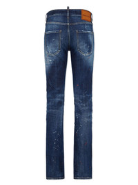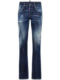 straight-leg jeans Highlights - Navy blue - Cotton blend - Washed denim - Straight leg - Concealed fly and button fastening - Contrast stitching - Belt loops - Mini logo tag - Classic five pockets - Whiskering effect - Ripped detailing - Paint splatter detail - Logo patch to the rear - Slim cut Made in Italy Composition Lining: Polyester 65%, Cotton 35% Outer: CALFSKIN 100%, Cotton 99%, Spandex/Elastane 1%