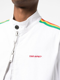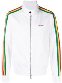 stripe-trim bomber jacket Highlights - Milk white - Multicolour - Cotton - Stripe detailing - Band collar - Front zip fastening - Long sleeves - Elasticated cuffs - Elasticated hem - Straight hem Made in Italy Composition Lining: Cotton 100% Outer: Cotton 97%, Elastane 3% SIZE & FIT Model measurements Height 6 ft 2 in(1.88 m) Bust/Chest 35.03 in(89 cm) Hips 35.82 in(91 cm) Waist 27.95 in(71 cm) Washing instructions Machine Wash
