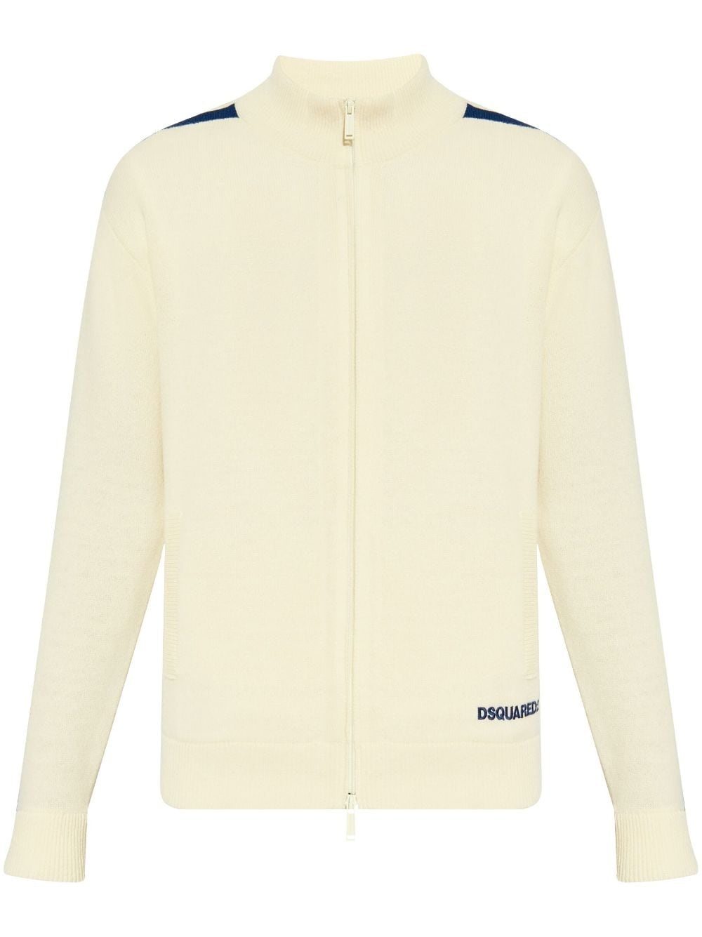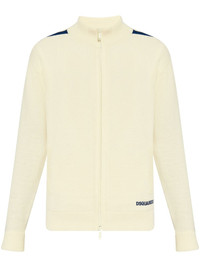 zip-up sweatshirt Highlights - Light beige - Wool blend - Embroidered logo - Ribbed detailing - Side stripe detailing - High neck - Front zip fastening - Two side slash pockets Made in Italy Composition Wool 97%, Viscose 2%, Polyester 1% SIZE & FIT FittingInformation Designed for a relaxed fit, this piece allows for comfort and movement when worn The ribbed hem offers a close, comfortable fit Made with a midweight knit, this piece offers some stretch