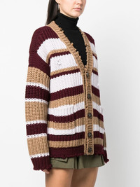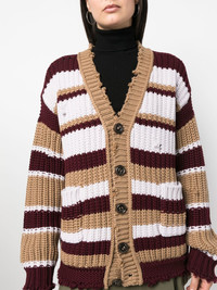 striped buttoned cardigan light brown/multicolour wool blend/cashmere blend knitted construction distressed effect stripe print V-neck front button fastening drop shoulder long sleeves straight hem Made in Italy Composition Wool 97%, Cashmere 3% SIZE & FIT Model measurements Height 5 ft 11 in(1.8 m) Bust/Chest 33.07 in(84 cm) Hips 37.4 in(95 cm) Waist 25.19 in(64 cm) FittingInformation This piece fits true to size. We recommend you get your regular size Cut for a loose fit Made with a mid-weight fabric Washing instructions Dry Clean Only
