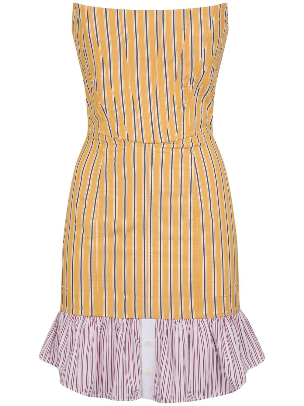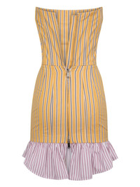 striped flared minidress Highlights - Yellow/multicolour - Stretch-cotton - Vertical stripe pattern - Decorative button detailing - Square neck - Rear two-way zip fastening - Strapless - Flared hem Made in Italy Composition Lining: Cotton 96%, Spandex/Elastane 4% Outer: Cotton 100% Washing instructions Read Manufacturer Guidelines