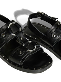 stud-detail calf-leather sandals black calf leather silver-tone stud detailing open toe square toe crossover strap at the toe buckle-fastening ankle strap branded footbed flat sole Made in Italy Composition Lining: Calf Leather 100% Outer: Calf Leather 100% Sole: Polyurethane 100%