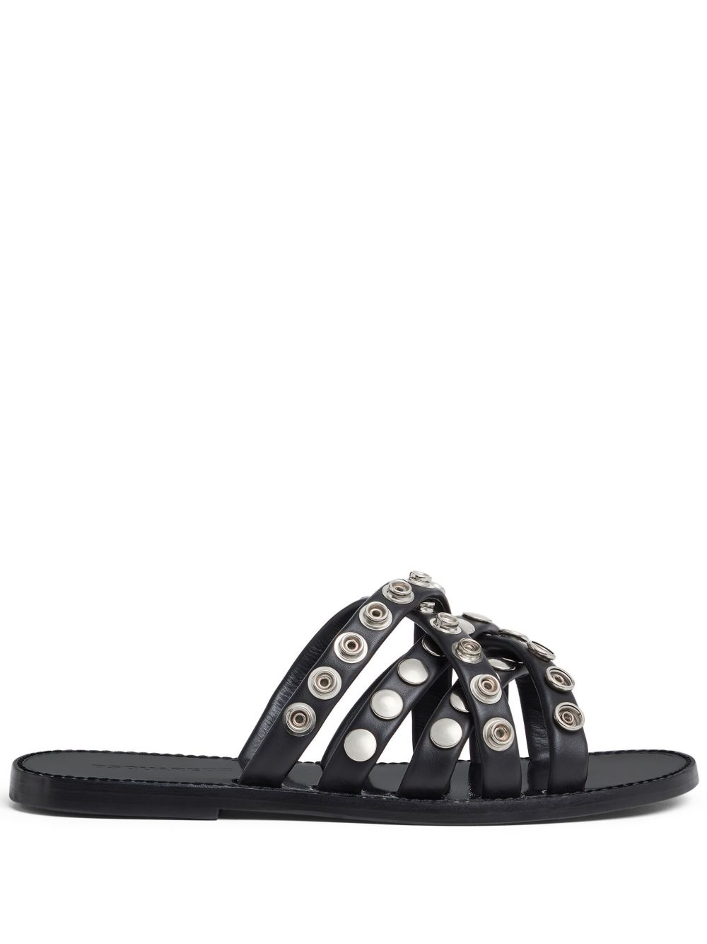 stud-embellished sandals Highlights - Black - Calf leather - Stretch-design - Stud embellishment - Slip-on style - Round open toe - Branded footbed - Flat leather sole Made in Italy Composition Sole: Calf Leather 97%, Elastane 3% Outer: Calf Leather 100% Lining: Calf Leather 100%