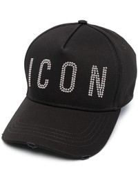 studded-logo cotton baseball cap A rock'n'roll aesthetic heavily influences DSquared2's designs, as showcased by the studded logo detail that adorns this hat. The brand takes it one step further with the distressed finish on the brim. Highlights - Black - Cotton - Six-panel construction - Curved peak - Curved narrow brim - Studded logo detail - Eyelet detailing - Distressed finish - Adjustable strap to the rear Imported Composition Cotton 100% SIZE & FIT Measurement BRIM 2.95 in(7.5 cm) CIRCUMFERENCE 22.04 in(56 cm) Washing instructions Dry Clean Only