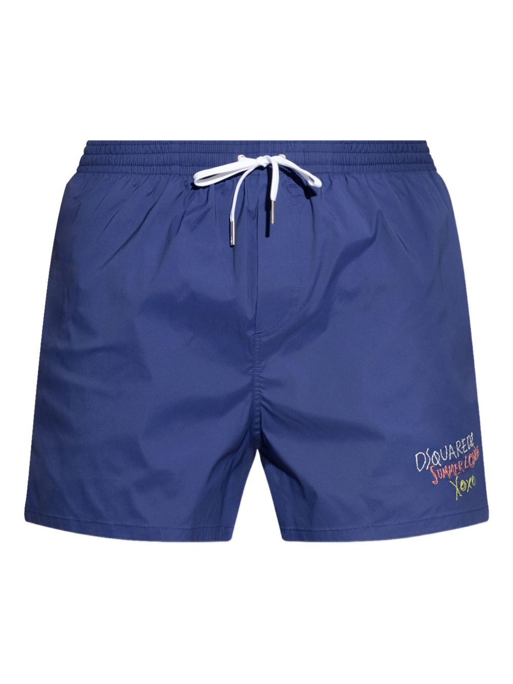 Summer Lovers swim shorts Highlights - Navy blue - Elasticated drawstring waistband - Two side slit pockets - Be mindful to try on swimwear over your own garments. Made in Italy Composition Polyester 95%, Spandex/Elastane 5% Washing instructions Read Manufacturer Guidelines