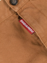 tapered cargo trousers brown cotton/wool/calf leather mini logo tag tapered leg mid-rise cropped camouflage pattern two side cargo pockets two rear patch pockets diagonal pocket to the side side flap pocket touch-strap cuffs belt loops concealed fly and button fastening Made in Italy Composition Outer: Cotton 100%, Calf Leather 100%, Wool 100% Lining: Cotton 100% SIZE & FIT Model measurements Height 6 ft 1 in(1.85 m) Bust/Chest 35.82 in(91 cm) Hips 37.79 in(96 cm) Waist 29.13 in(74 cm) FittingInformation This piece fits true to size. We recommend you get your regular size Cut for a slim fit Made with a mid-weight non-stretch fabric Washing instructions Dry Clean Only