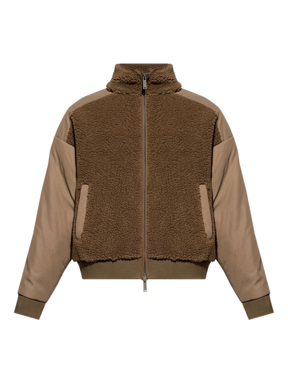 teddy-panelled bomber jacket Highlights - Brown - Teddy fleece texture - Panelled design - Zip fastening - Ribbed hem - High neck Made in Italy Composition Polyester 100% Washing instructions Read Manufacturer Guidelines