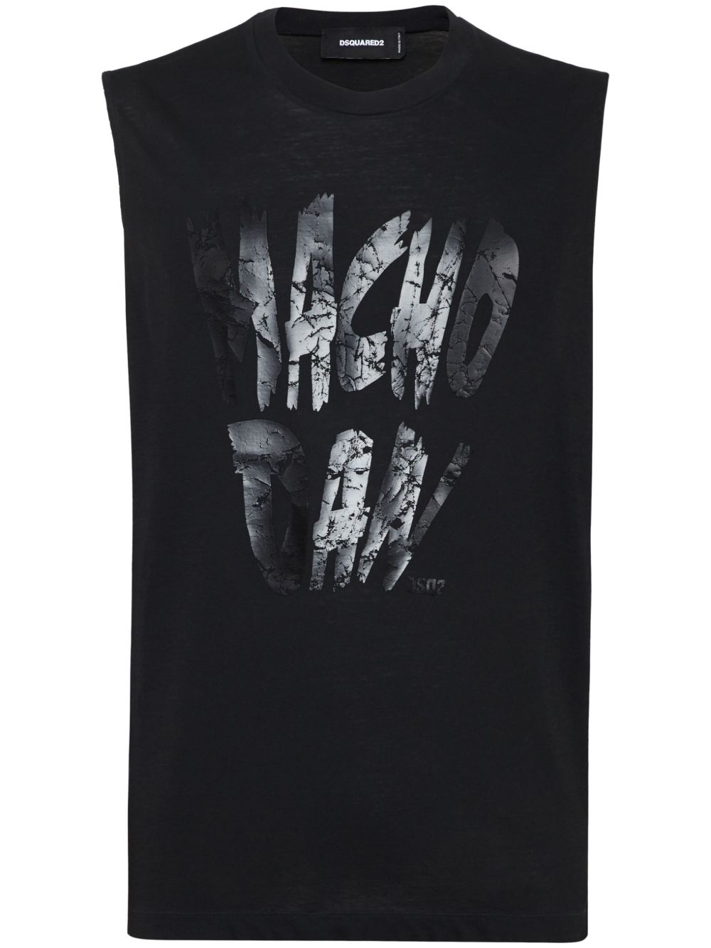 text-print tank top Highlights - Black - Cotton - Lightweight jersey - Text print - Crew neck - Sleeveless with raw-cut edge - Straight hem Made in Italy Composition Cotton 100%