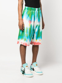 tie dye-print cotton track shorts multicolour cotton tie-dye print logo print to the rear elasticated waistband two side slash pockets knee-length Made in Italy Composition Lining: Cotton 100% Outer: Cotton 100% SIZE & FIT Model measurements Height 6 ft 2 in(1.87 m) Bust/Chest 37 in(94 cm) Hips 33.85 in(86 cm) Waist 27.95 in(71 cm) FittingInformation Designed with a wide leg, offering a loose and roomy fit Made from a midweight non-stretch fabric, this piece offers minimal elasticity when worn This piece fits true to size – take your usual size Washing instructions Machine Wash