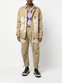 two-tone flap-pocket jacket Dsquared2's jacket is reminiscent of utilitarian styles. The contrasting oversized flap and zip pockets are typically seen on uniforms. Highlights - Khaki/cream white - Stretch-cotton - Logo plaque - Classic collar - Concealed front press-stud fastening - Front zip fastening pockets - Two side flap pockets - Long sleeves - Buttoned cuffs Made in Italy Composition Polyester 100%, Cotton 97%, Spandex/Elastane 3% SIZE & FIT Model measurements Height 6 ft 0 in(1.84 m) Bust/Chest 36.22 in(92 cm) Hips 35.43 in(90 cm) Waist 26.77 in(68 cm) FittingInformation This piece fits true to size. We recommend you get your regular size Cut for a loose fit Made with a mid-weight stretch fabric Washing instructions Dry Clean Only
