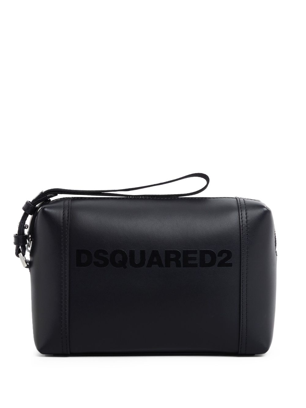 Urban wash bag Highlights - Black - Top zip fastening - Wrist strap - Logo print to the front Made in Italy Composition Outer: Calf Leather 100% Lining: Cotton 100%