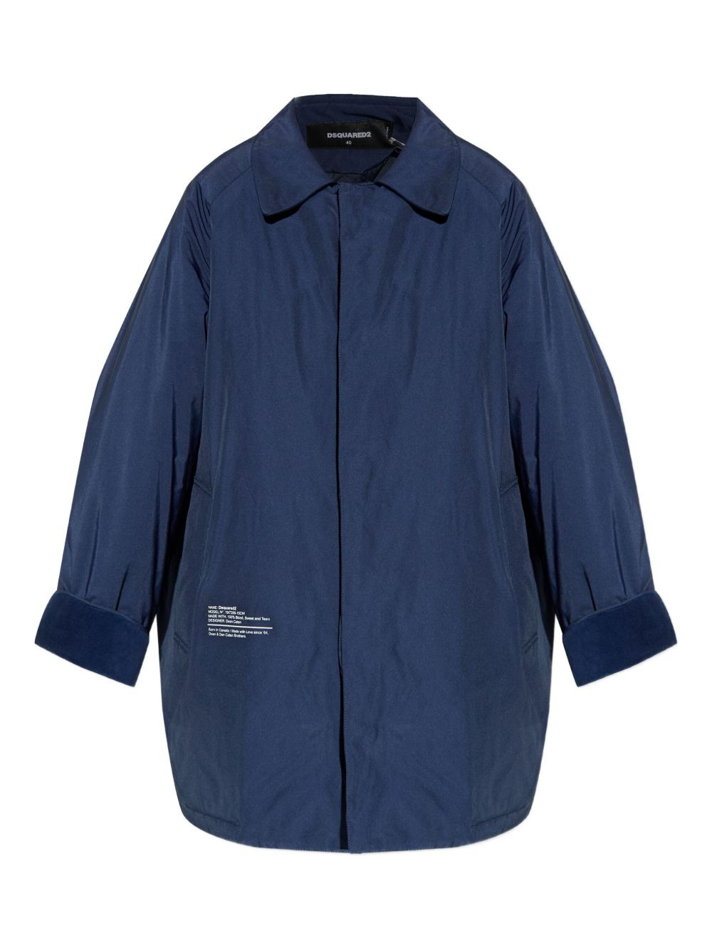 velvet-cuffed shirt coat Highlights - Blue - Shirt collar - Velvet cuffs - Straight hem - Text print Made in Italy Composition Polyester 100% Washing instructions Read Manufacturer Guidelines