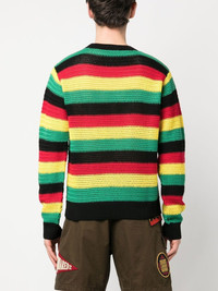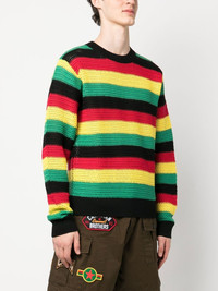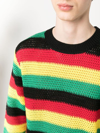 virgin-wool jumper black/multicolour virgin wool open knit horizontal stripe pattern crew neck long sleeves Imported Composition Virgin Wool 100% SIZE & FIT Model measurements Height 6 ft 3 in(1.91 m) Bust/Chest 37 in(94 cm) Hips 37.79 in(96 cm) Waist 28.34 in(72 cm) Washing instructions Dry Clean Only