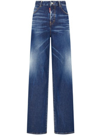 wide-leg jeans Cut to a wide-leg silhouette, these Dsquared2 jeans are decorated with a logo patch on the back. Highlights - Blue - Cotton blend - Whiskering effect - Mini logo tag - Belt loops - Logo patch on back - Front button and fly fastening - Wide leg - Classic five pockets Made in Italy Composition Lining: Polyester 65%, Cotton 35% Outer: Cotton 92%, Polyester 6%, Spandex/Elastane 2% Washing instructions Read Manufacturer Guidelines