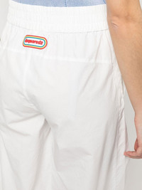 wide leg trousers white cotton blend logo patch to the rear elasticated waistband wide leg floor-length Made in Italy Composition Cotton 60%, Polyamide 40% SIZE & FIT Model measurements Height 5 ft 11 in(1.8 m) Bust/Chest 31.49 in(80 cm) Hips 36.22 in(92 cm) Waist 25.59 in(65 cm) FittingInformation This piece fits true to size. We recommend you get your regular size Designed to be fitted at the waist, loose over the leg Made with a lightweight non-stretch fabric Washing instructions Machine Wash