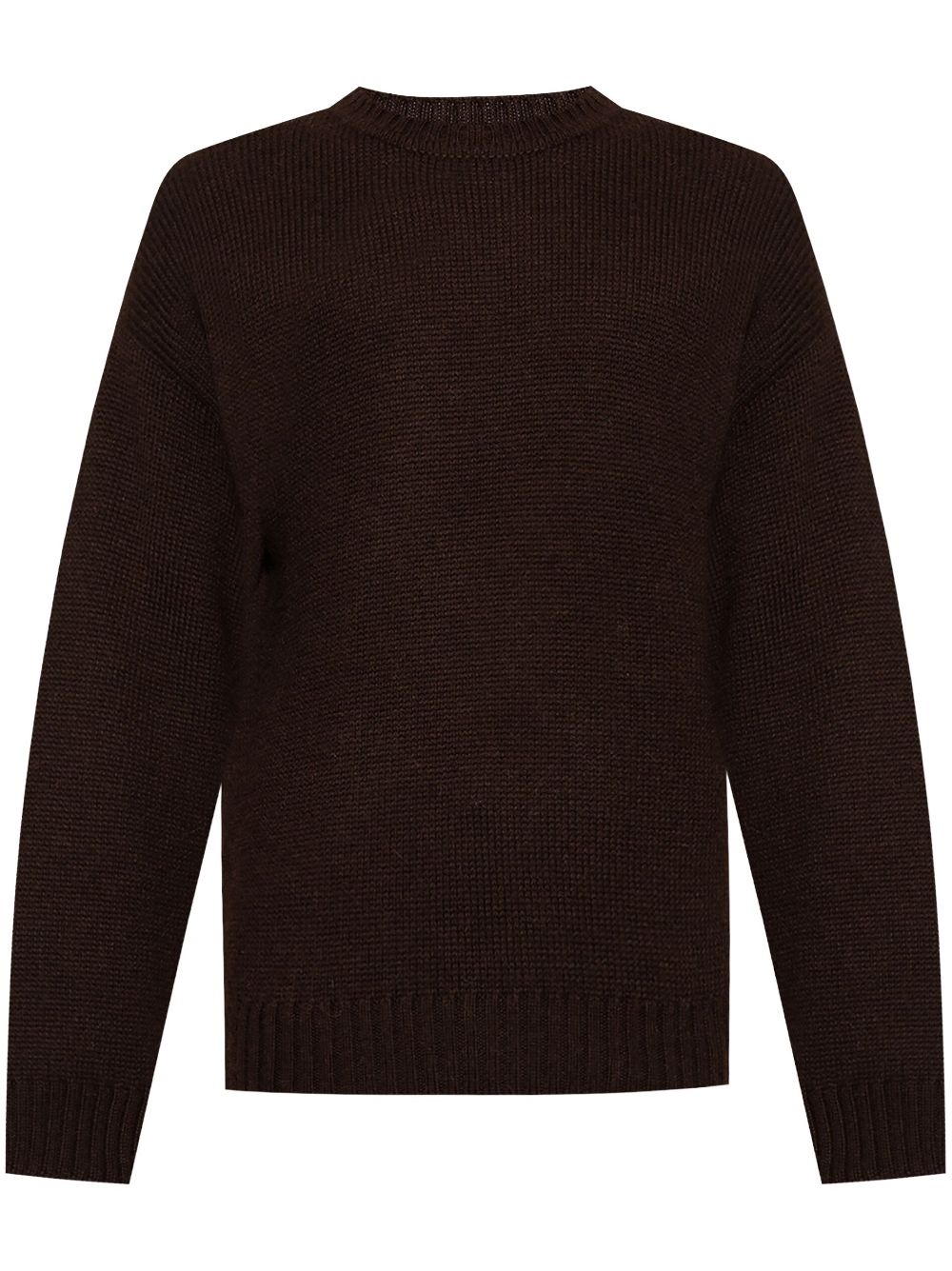 wool jumper Highlights - Brown - Wool - Knitted construction - Crew neck - Drop shoulder - Long sleeves - Logo patch to the rear - Ribbed cuffs and hem Imported Composition Wool 100% Washing instructions Read Manufacturer Guidelines